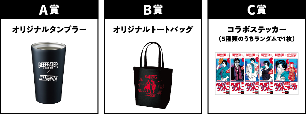 ■オリジナルコラボグッズ:A賞「オリジナルタンブラー」、B賞「オリジナルトートバッグ」、C賞「コラボステッカー」(5種類のうちランダムで1枚)